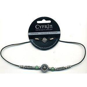Cyfrin Dragon's Eye Celtic Bead and Genuine Gemstone Necklace Green Aventurine