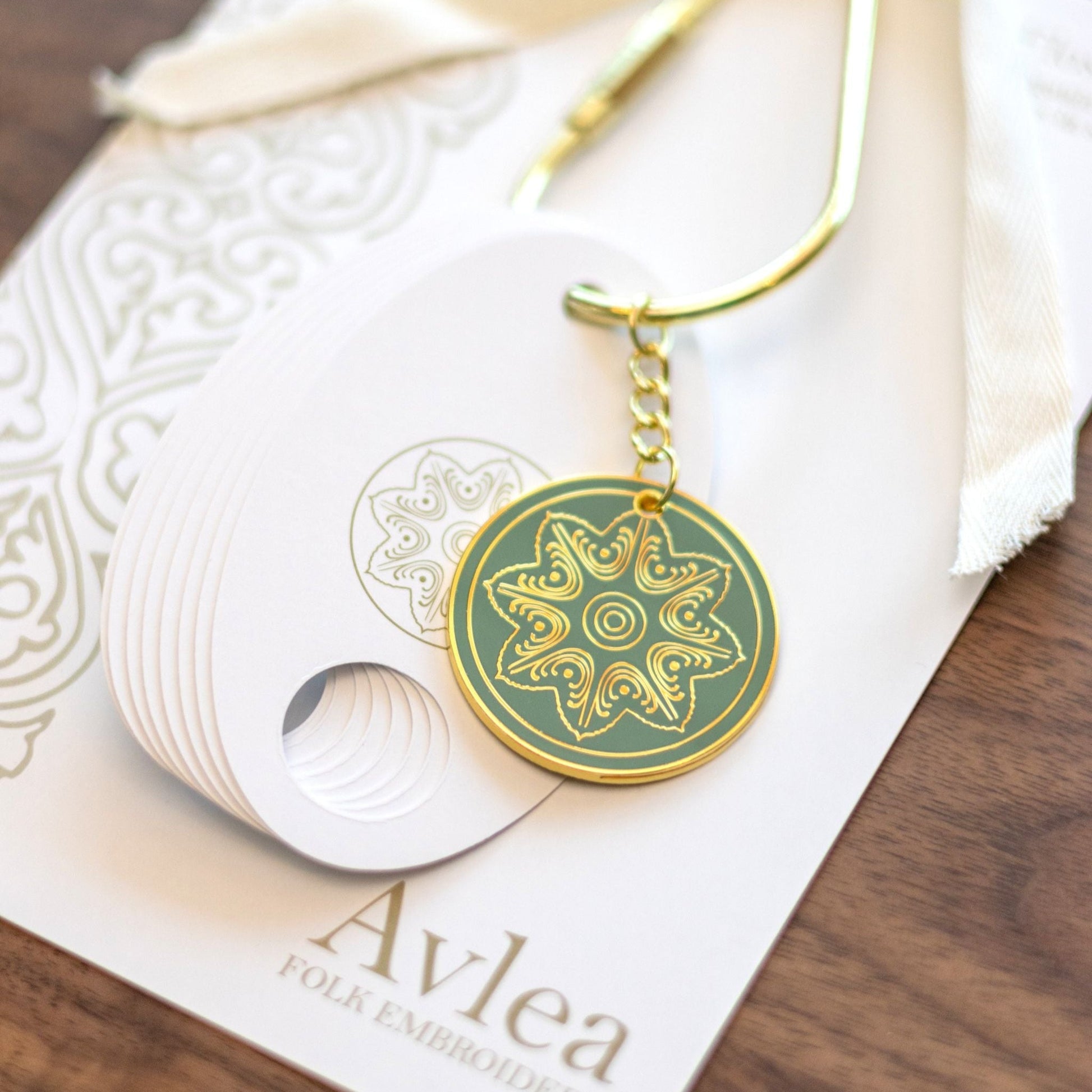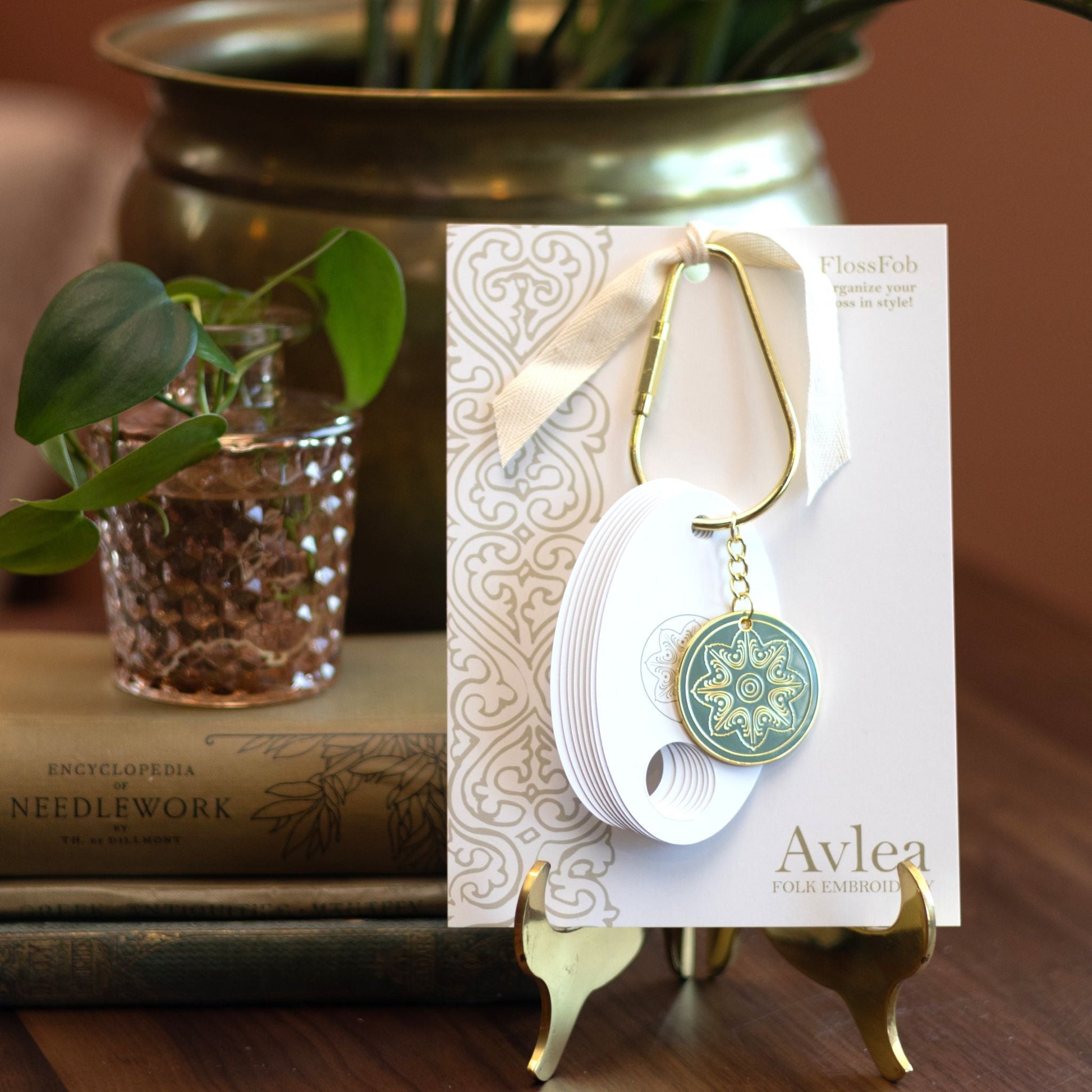 Looking for a beautiful way to organize your floss? The Avlea FlossFob features a large oval ring with a barrel clasp which allows you to add floss organizers for various stitching projects. Ornamented with the Daphni enamel medallion, the FlossFob comes with 8 floss organizers and is a lovely notion to add to your stitching tools or give as a gift.