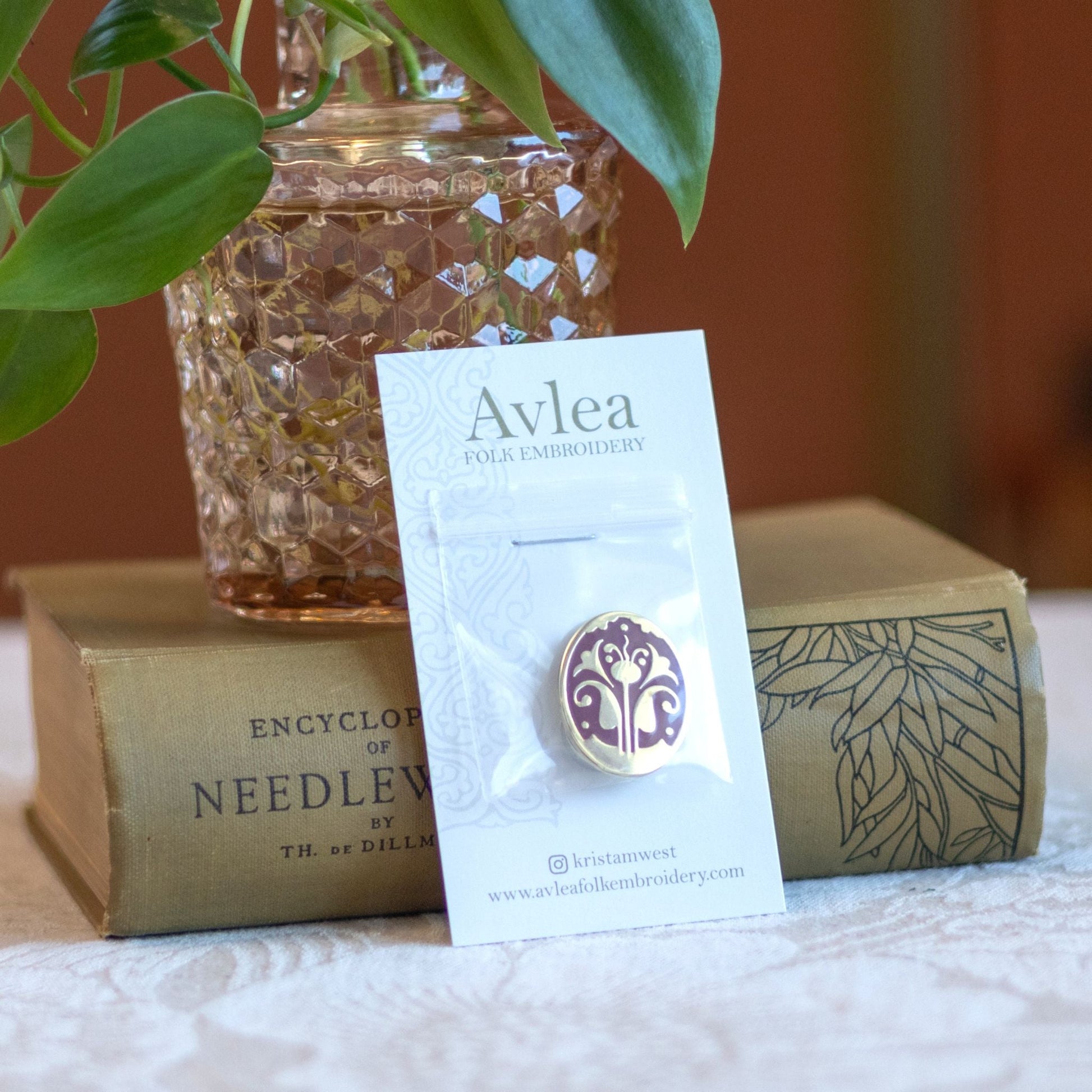 The Avlea Folk Embroidery "Byzantine Motifs" series of needleminders is inspired by the tiny decorations and ornamentations found in Byzantine manuscripts and iconography. These lovely motifs are tiny works of art! Needleminders are terrific for not just holding your needle when not in use, but for securing your fabric as you stitch, or holding your pattern to your frame. They can even be worn as a beautiful magnet pin! Needleminder is 1" across and comes with a 1/2" neodinum magnet (it's strong!)